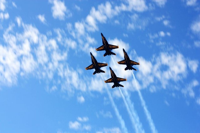 作为一个军港,我们没有好吃的中国菜,甚至也没有好吃的菜,但我们有的是灰机、军舰、冲锋枪和傻不拉几的美国大兵。每年的10月1、2、3都是San Diego Air Show的时间,从几个月前就开始准备了,据说都在半夜从高速上偷着运飞机过来的。